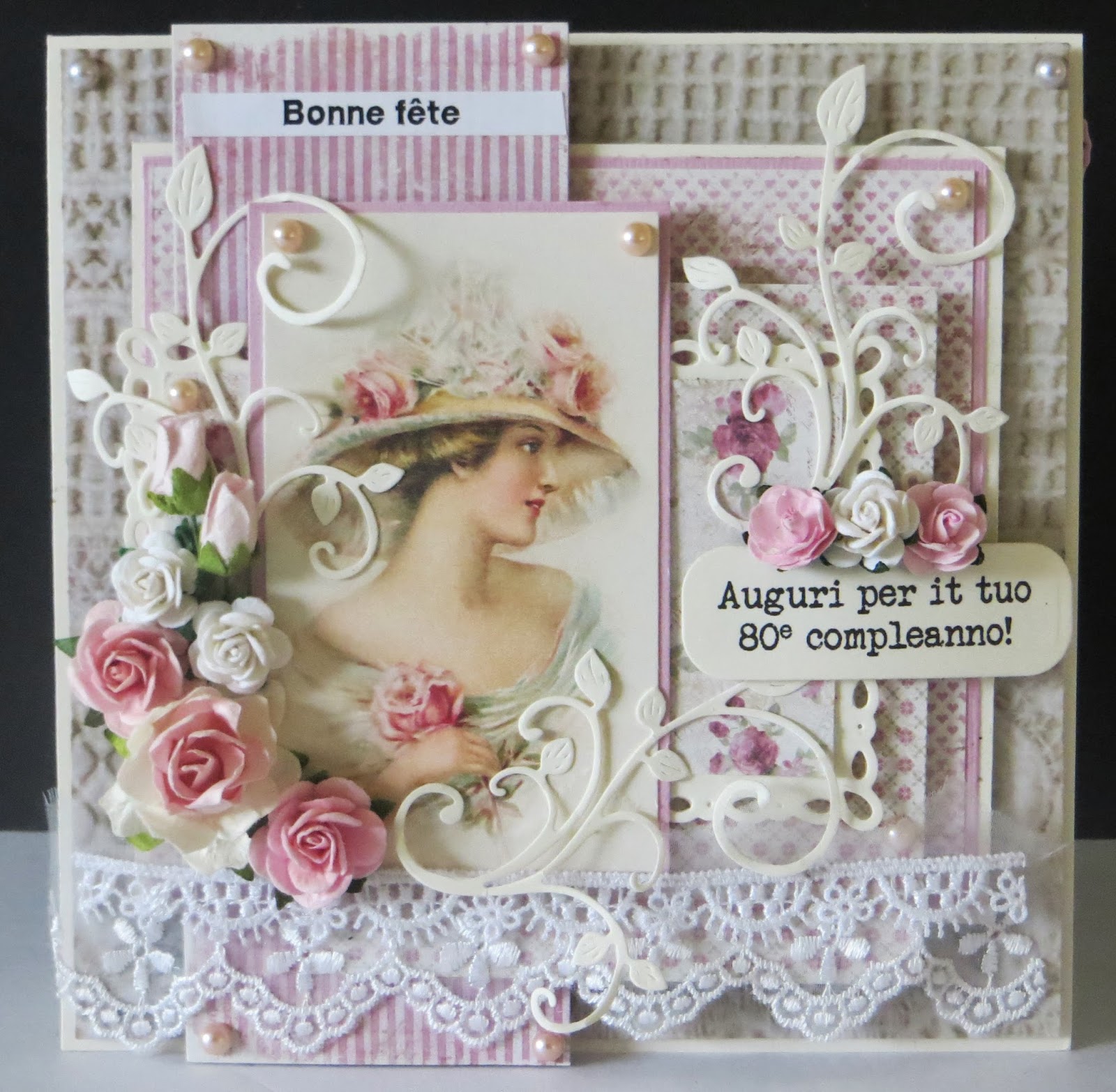 Encre distress, embossage avec poudre frantage sur une étampe penny black et souhait mc collection